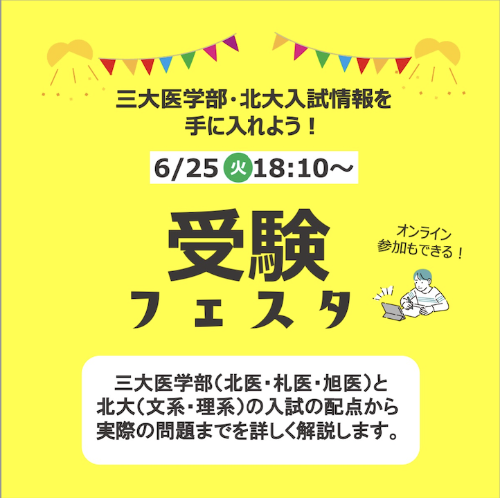 三大医学部(北医・札医・旭医)、北海道大学の受験情報や面接についての情報が盛りだくさんのイベントです!受験は受験大学を研究し、分析、対策することからはじまります。情報誌では理解が難しい内容や情報が少ない面接内容も46年の実績のあるクラズ教務職員・正規職員が分かりやすく解説します。