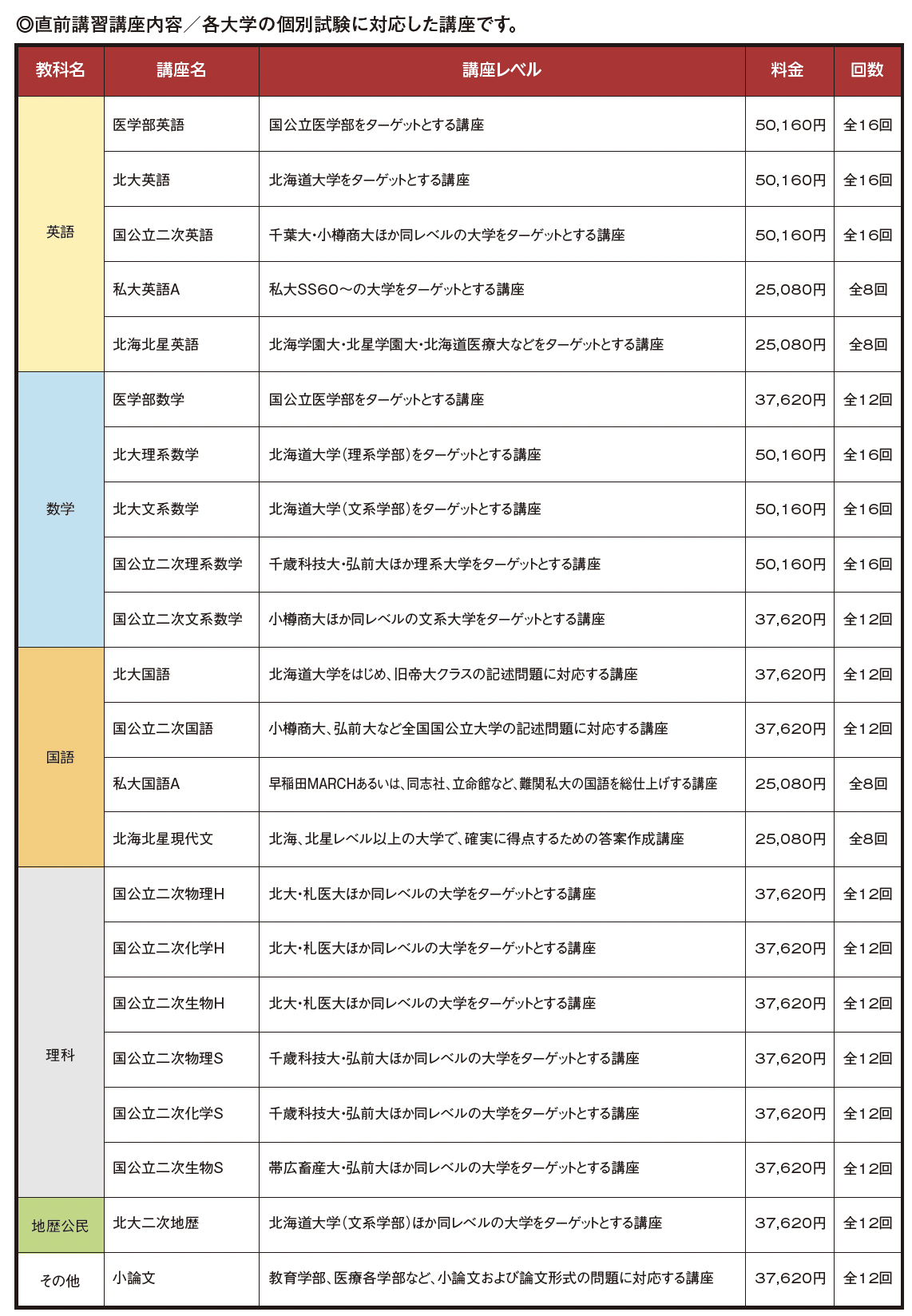 受験を熟知した講師陣が医学部や北大を目指す皆さんを強力にサポート!二次試験をとことん研究した授業と問題の徹底演習を行います。