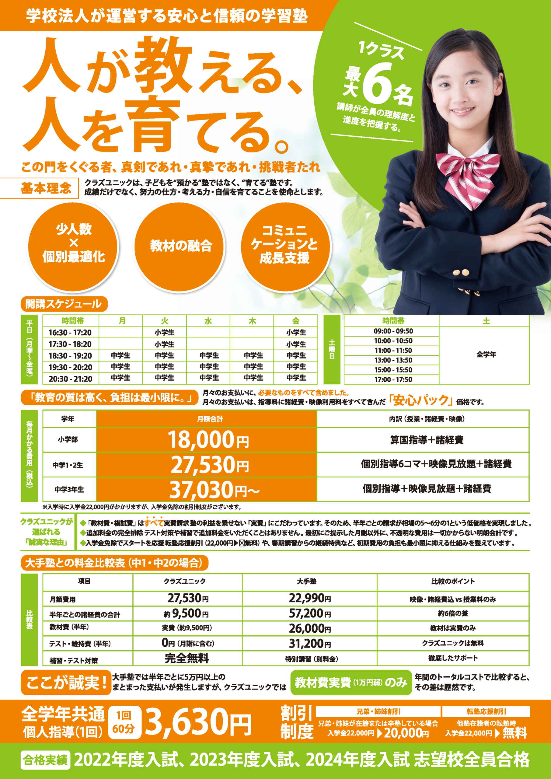 - 【兄弟・姉妹割引】: ご家族が在籍・卒塾されている場合の優待制度がございます。