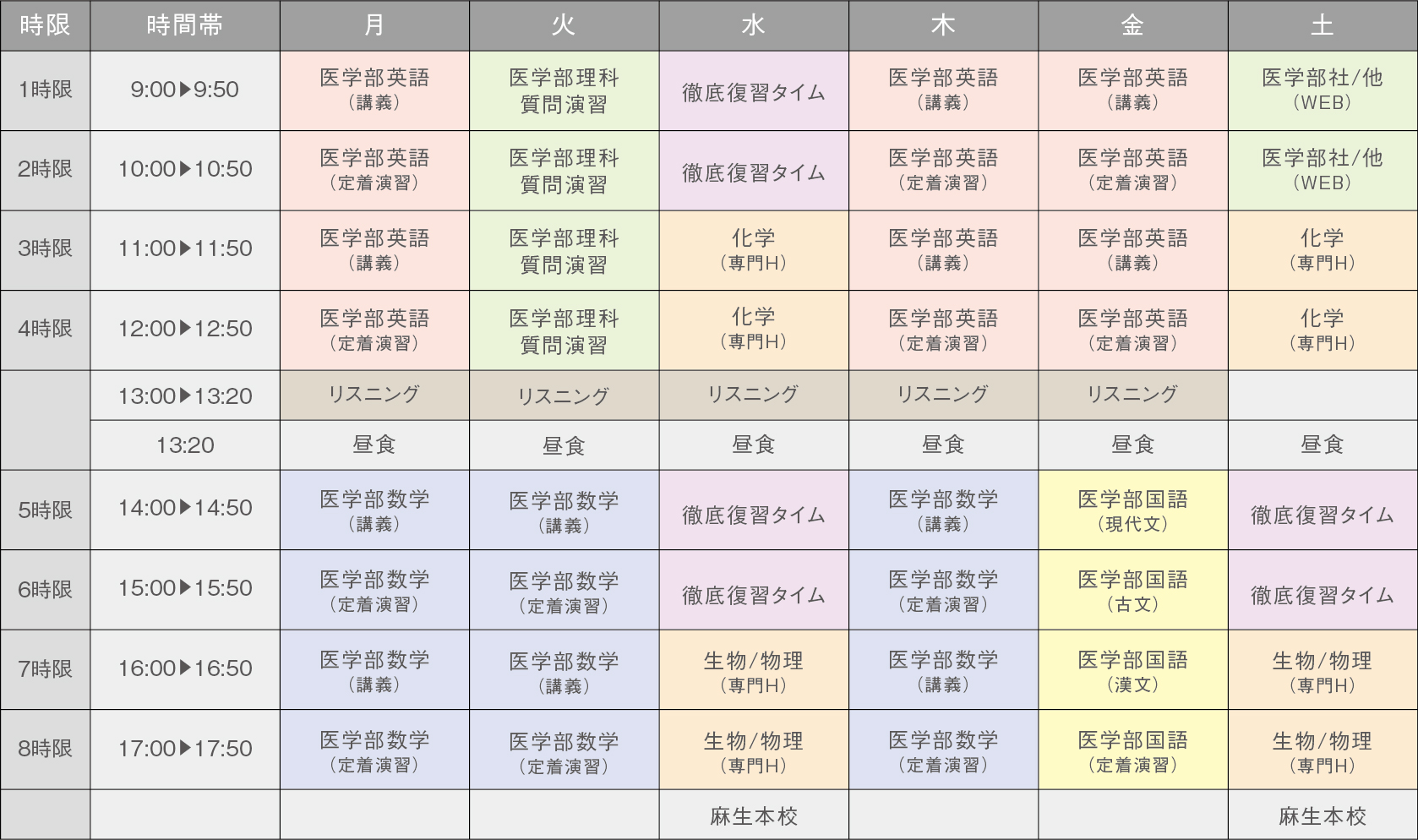 月~土の9時~18時までの毎日8時間の受験指導です。